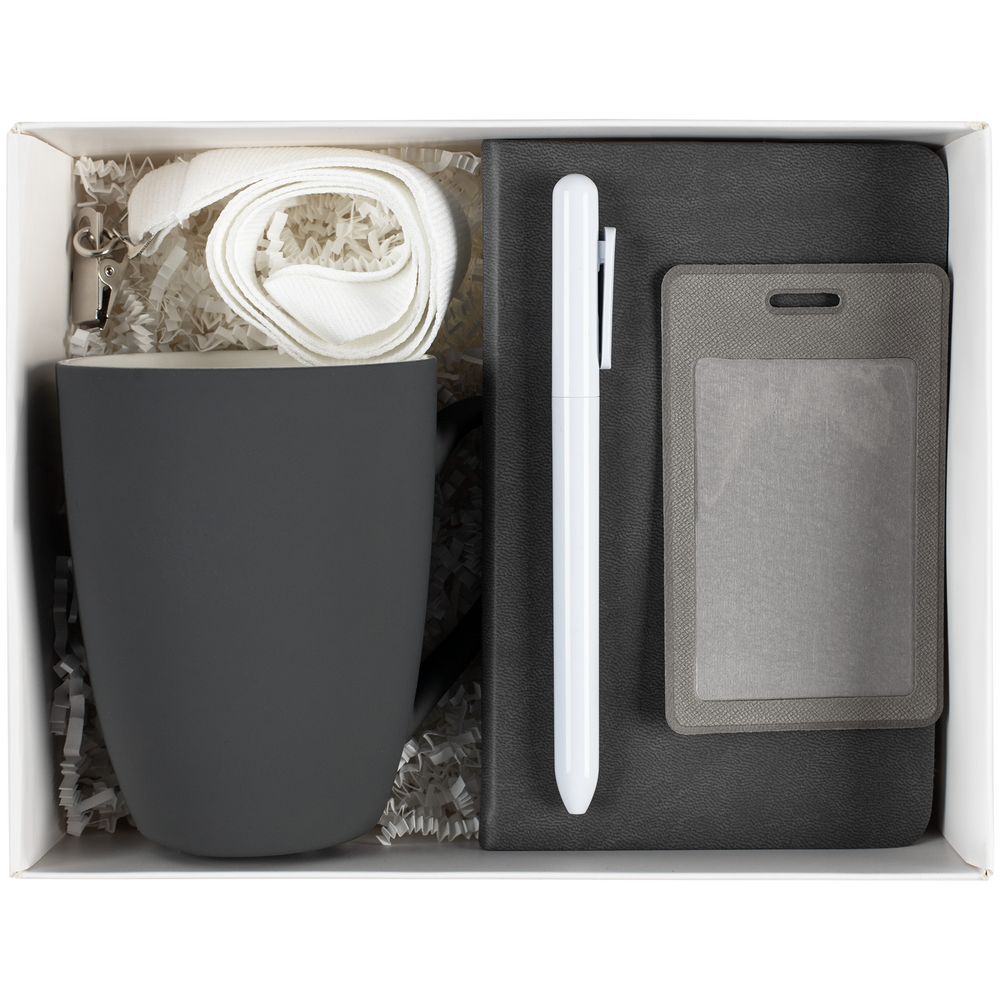 Лаконичный приветственный набор Hop In содержит все самое необходимое для успешной и быстрой адаптации нового сотрудника в команде. Это основные офисные принадлежности — блокнот и ручка — для подробной записи идей и планов; чехол для пропуска на ленте — для безопасности и идентификации; компактная кружка — для приятного перерыва в компании с новыми коллегами.