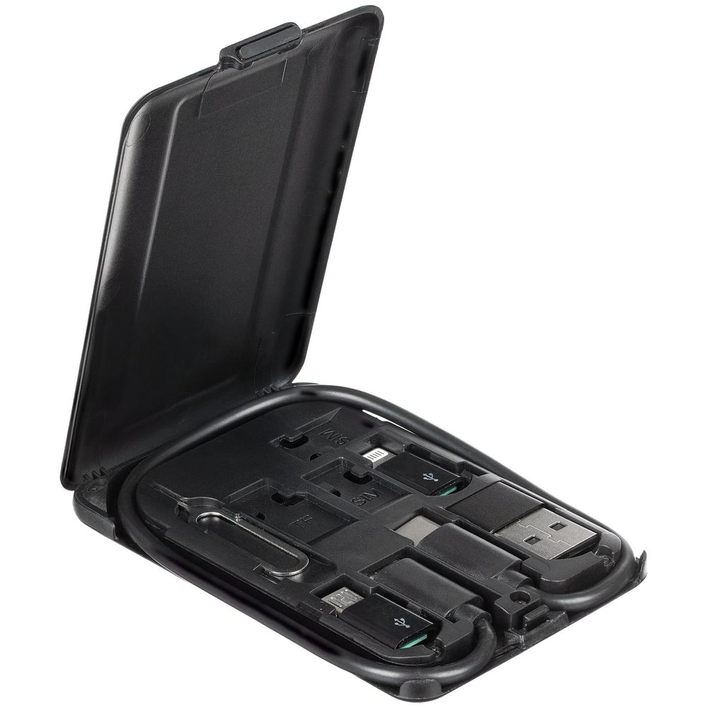 В нем собраны 8 продуманных и полезных аксессуаров в элегантном черном исполнении: рюкзак для ноутбука, беспроводные наушники, органайзер с беспроводной зарядкой и набором адаптеров, бутылка для воды, чехол для карты на телефон, солнцезащитные очки, брелок-фонарик и шариковая ручка с покрытием софт-тач. В такой компании получится эффективно организовать рабочее время и пространство, а также подчеркнуть деловой статус в любой ситуации.