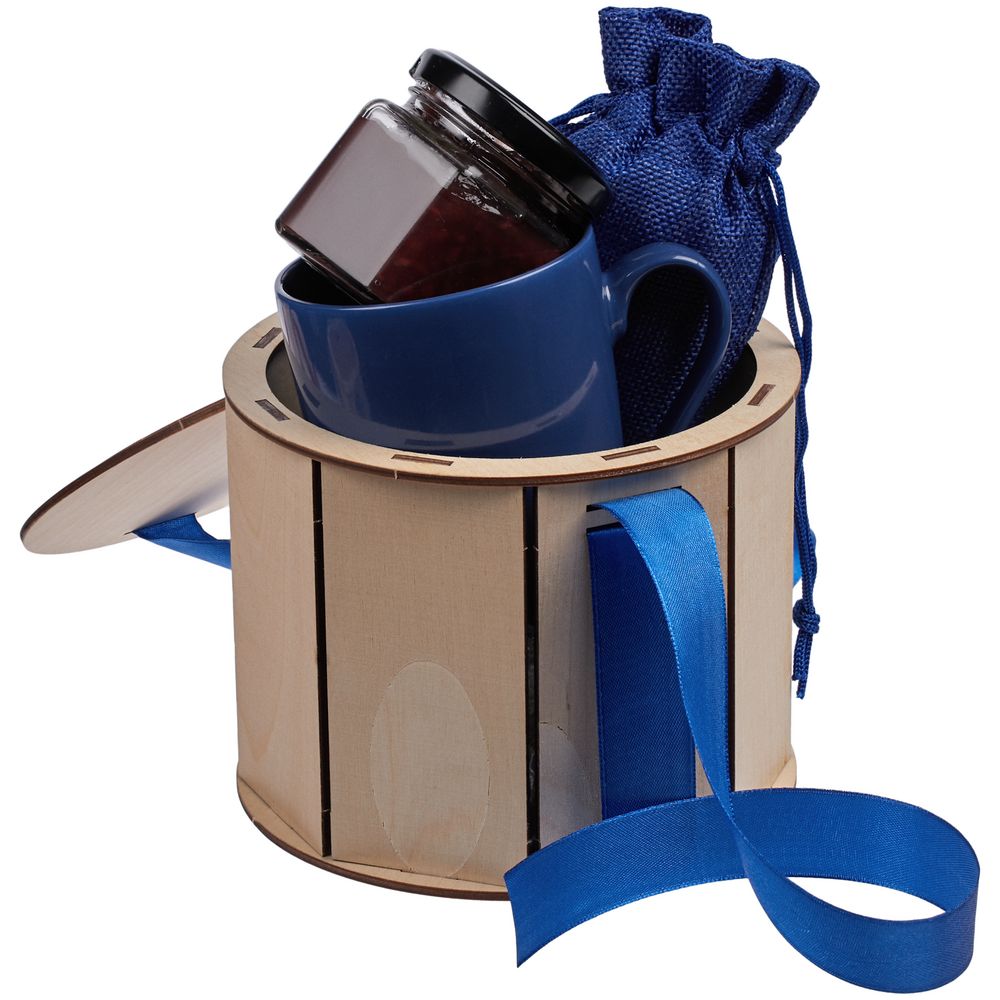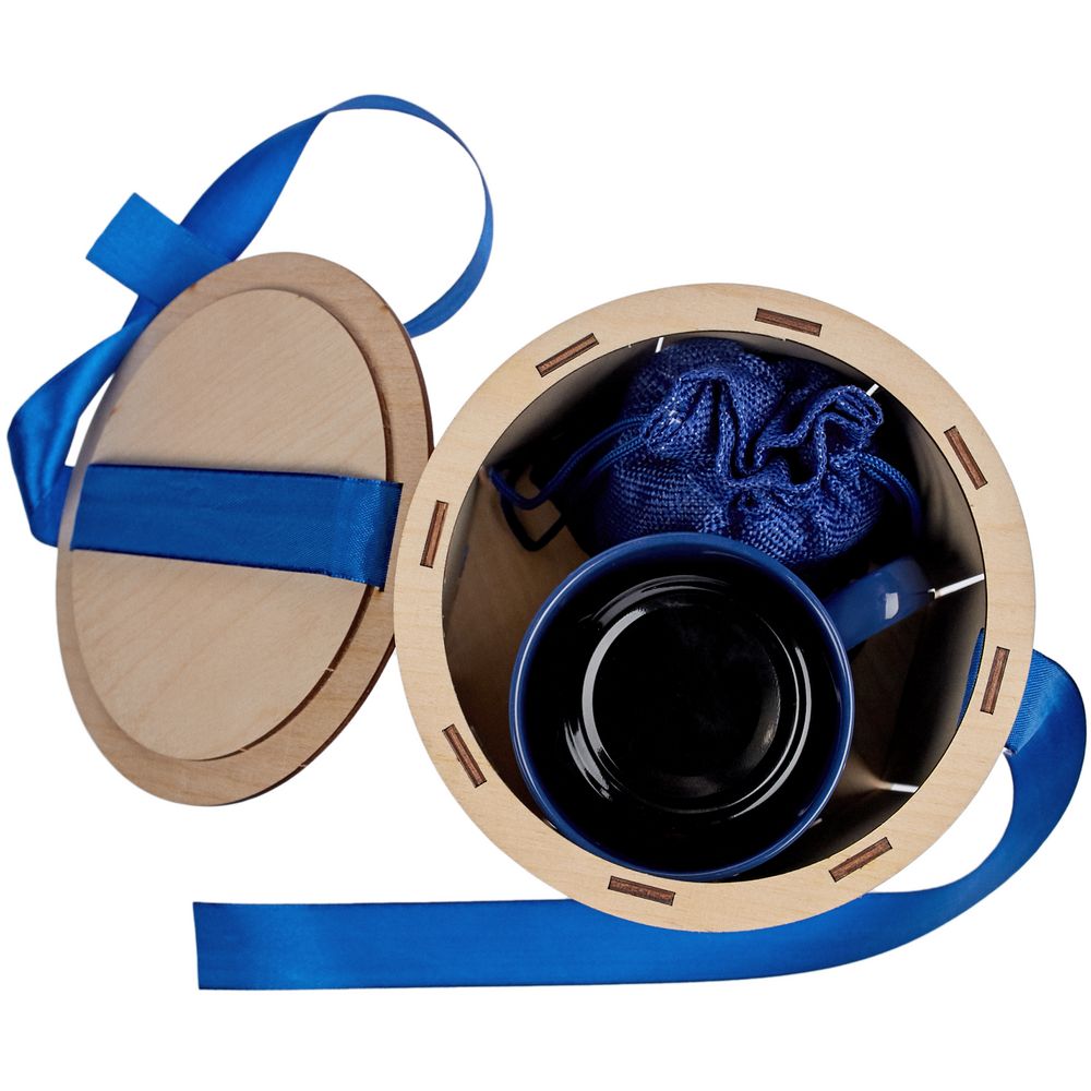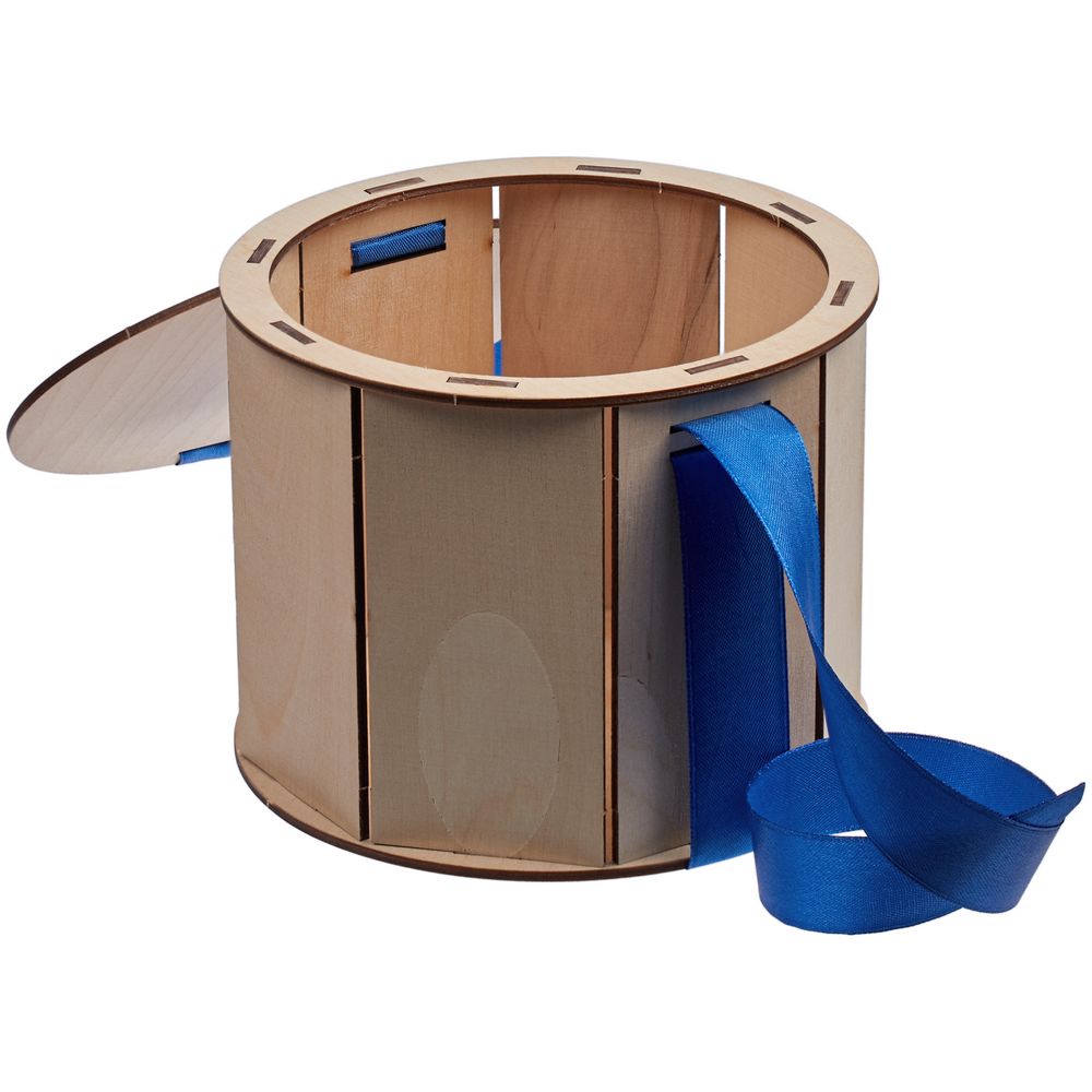 Коробка Drummer, круглая, с синей лентой