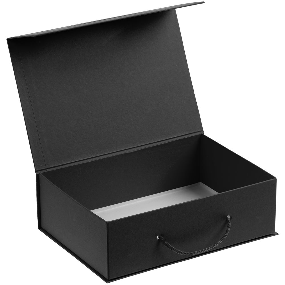 Коробка выполнена из переплетного картона, кашированного гладкой дизайнерской бумагой Kiris, с крышкой на магните.