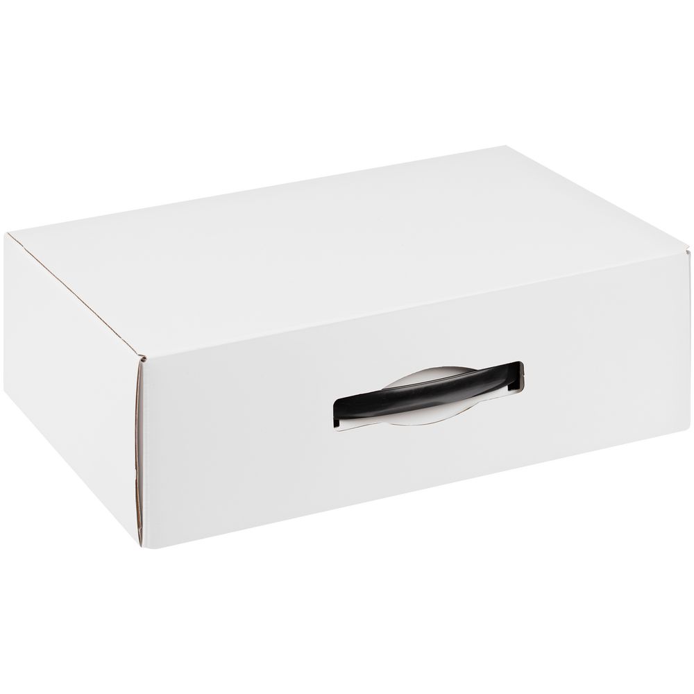 Самосборная коробка-шкатулка со вставной пластиковой ручкой.