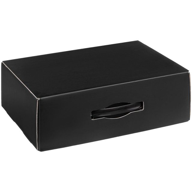 Самосборная коробка-шкатулка со вставной пластиковой ручкой.