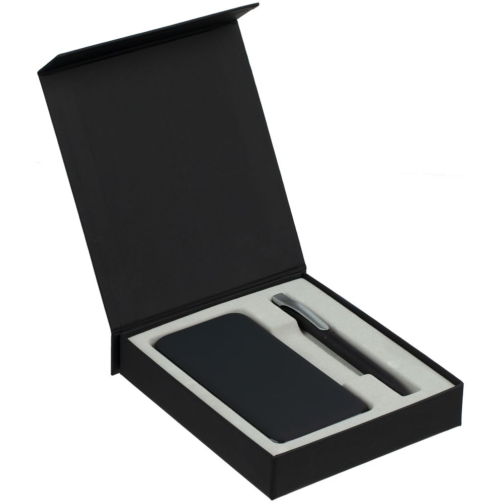 Подарочная коробка для аккумулятора 14,6х7,5х1,3 см и ручки 14,5х1,5х0,8 см с крышкой на магните и флокированным ложементом.