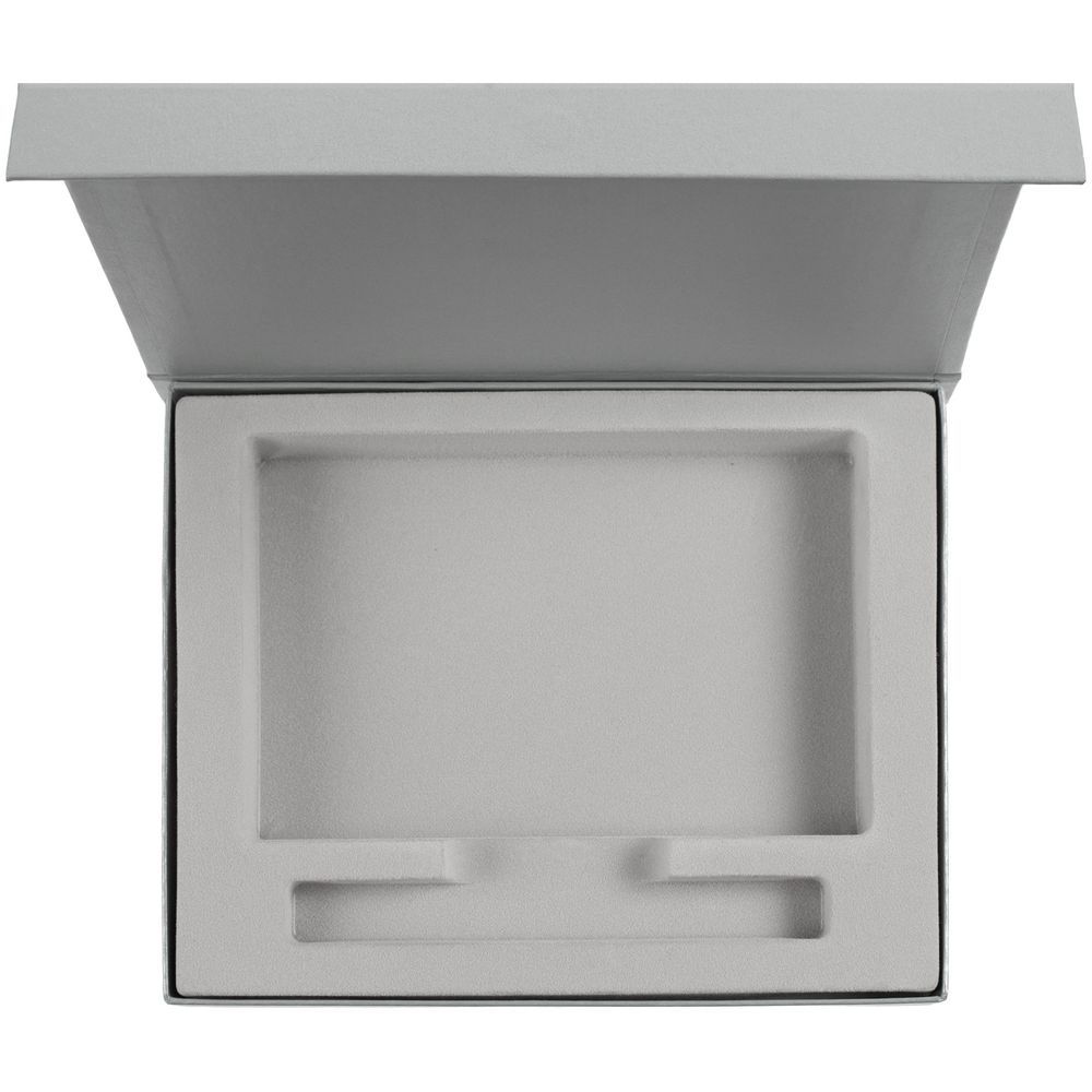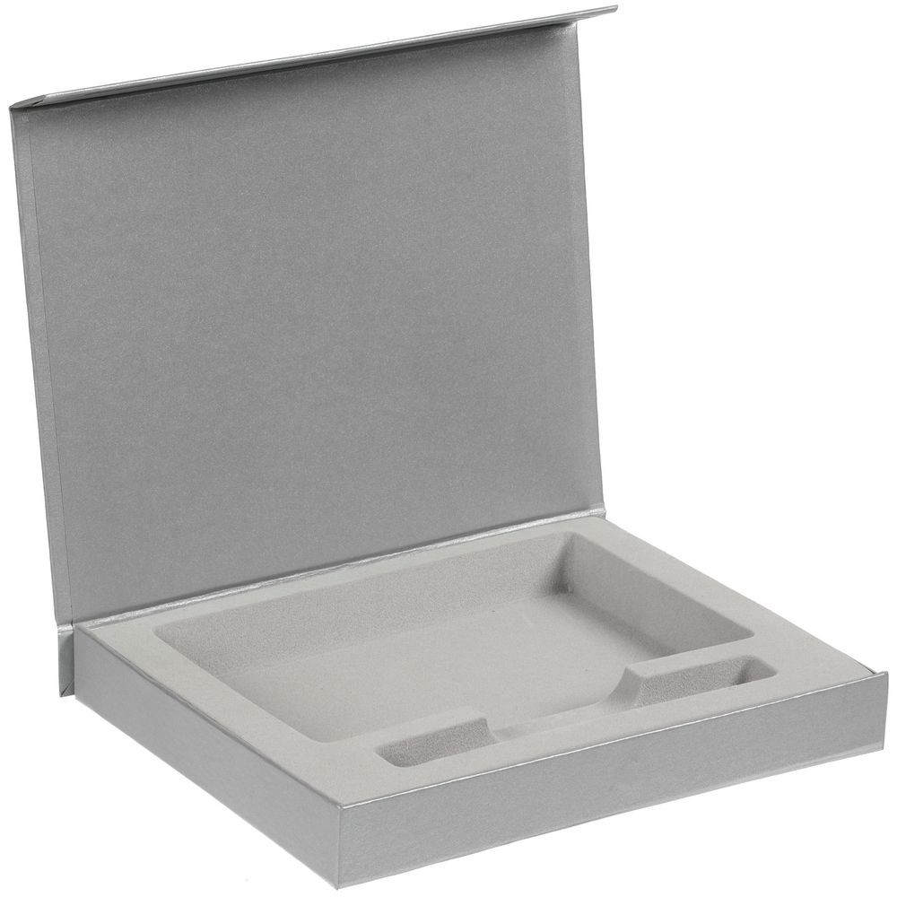 Коробка из переплетного картона, кашированного дизайнерской бумагой Galaxy Metallic, с крышкой на магните и флокированным ложементом.