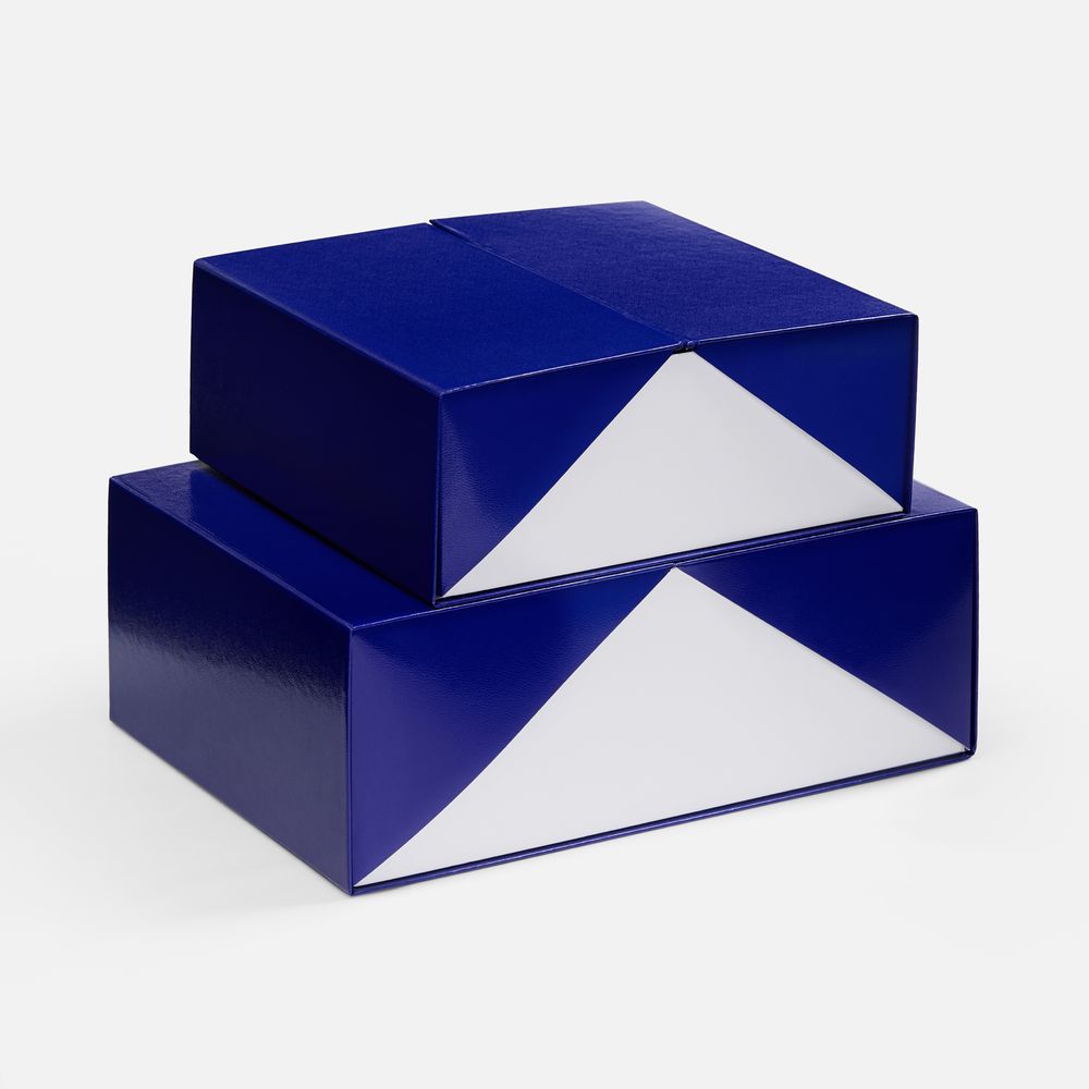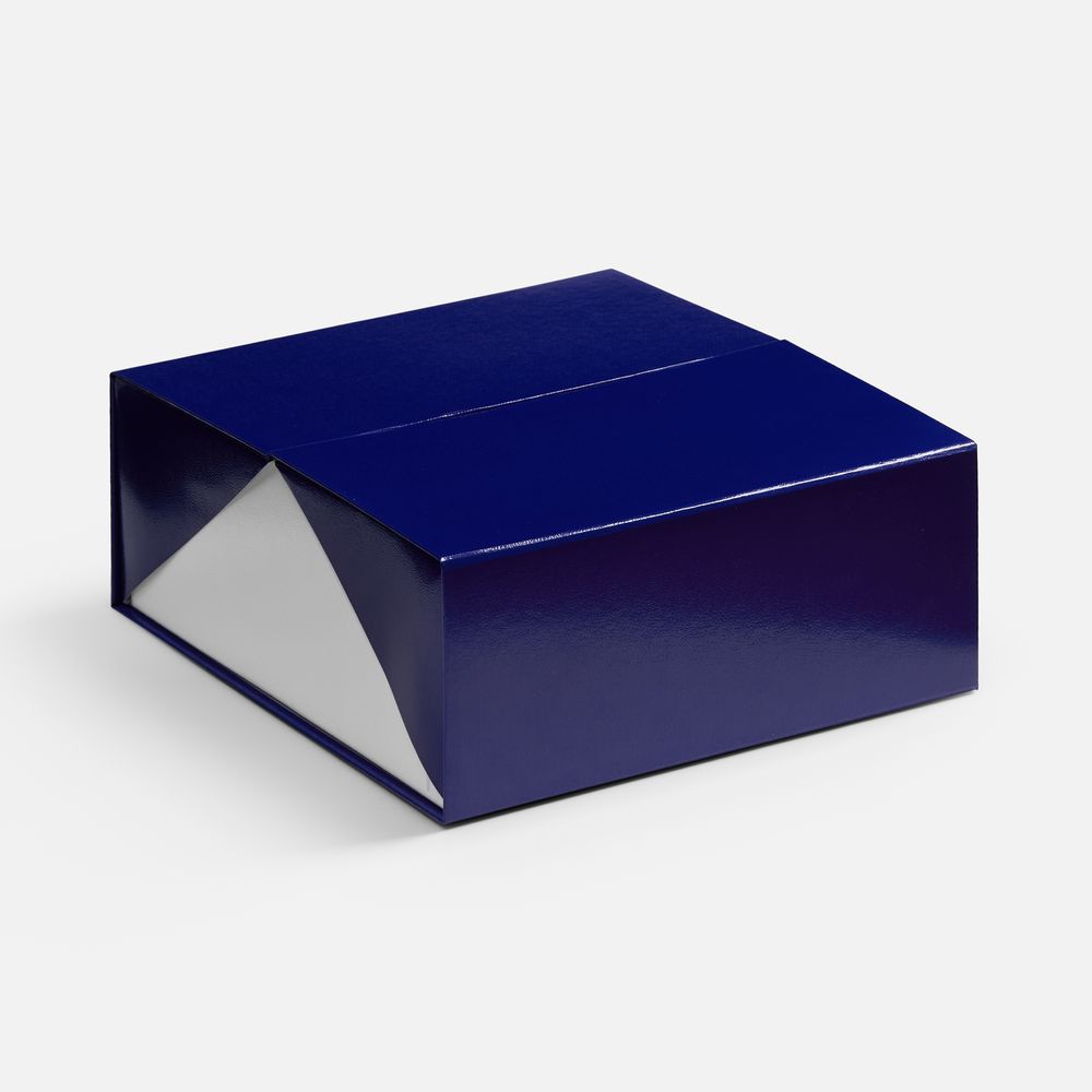 Коробка из переплетного картона 2 мм с оригинальной конструкцией: две симметричные створки открываются, создавая эффектную презентацию содержимого. Складная система на предустановленный двусторонний скотч делает сборку коробки быстрой и интуитивно понятной.