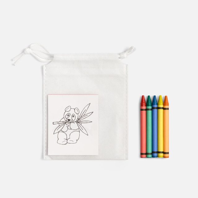 В комплекте 5 цветных восковых мелков и 20 листов с картинками для раскрашивания.