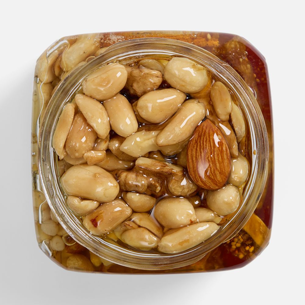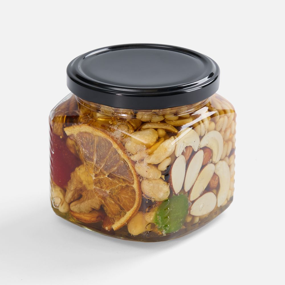 В основе набора Forest Pump —идеальное сочетание двух натуральных лакомств: ароматный медовый десерт с хрустящими орехами, цукатами и полезными семенами составляет прекрасную партию насыщенному черному чаю. В чайном купаже нежная сладость сушеной вишни переплетается с легкой кислинкой малины, а лепестки роз и цветки мальвы добавляют напитку особенные ноты, напоминающие о цветущем летнем саде.