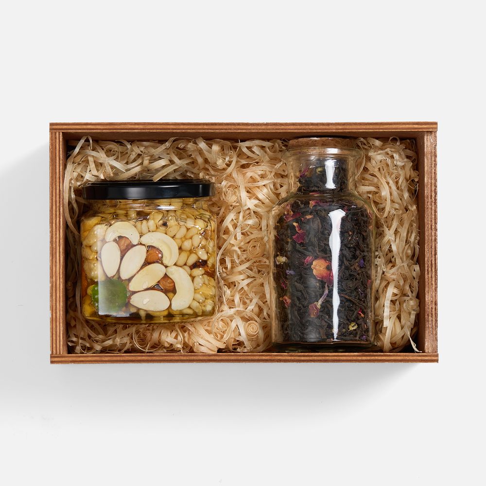 Этот набор станет прекрасным выбором как для бодрого утра, так и для спокойного вечера. Все компоненты представлены в деревянном ящике, что делает набор изысканным подарком для ценителей натуральных вкусов и материалов.