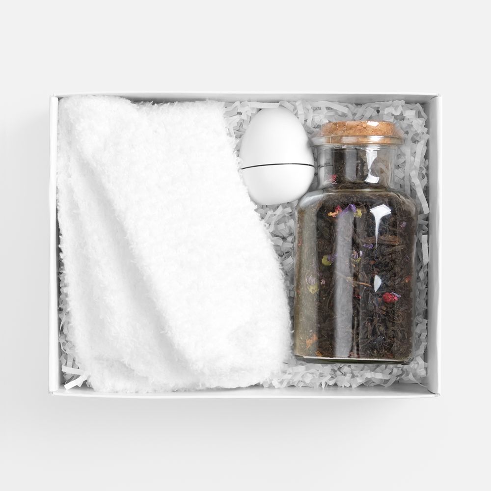 Это базовые элементы заботы — мягкие носки и бальзам для губ — и уникальный сорт чая, задающий особое настроение. Идеальное решение для всех, кто ценит спокойные моменты уединения и эстетику повседневных ритуалов.