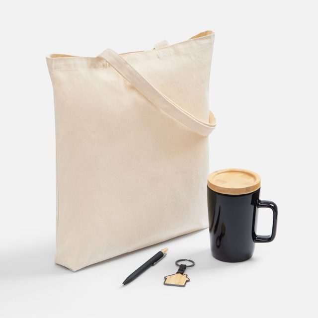В комплекте: полезные и функциональные аксессуары с деталями из бамбука, упакованные во вместительную холщовую сумку. Все для вдохновенных идей и продуктивных дней!