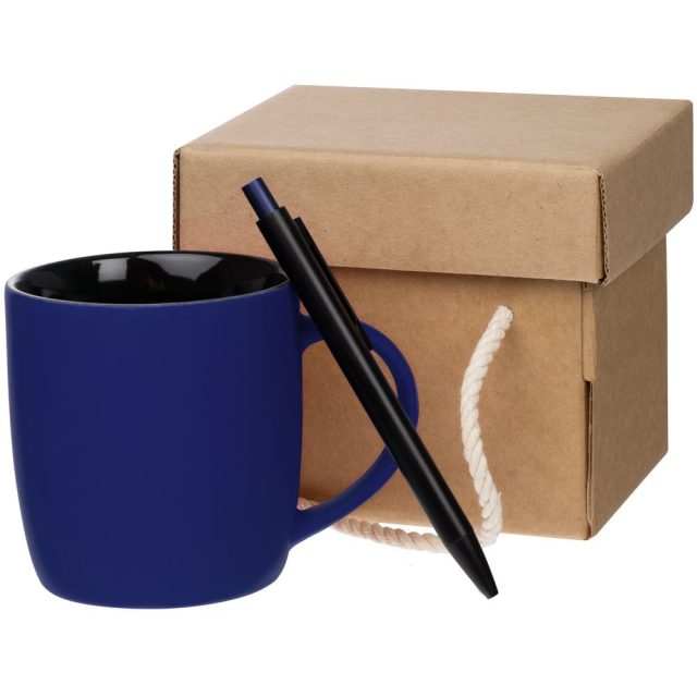 Набор Color Block: кружка и ручка, синий с черный