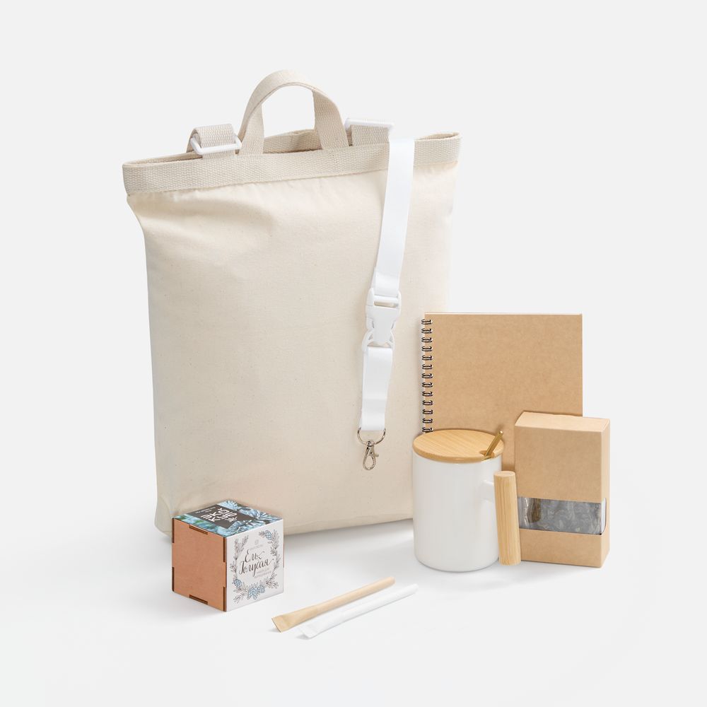 Think Green — готовое экологичное решение для приветственного набора. Включает 8 практичных предметов из переработанных и натуральных материалов: от канцелярии до чайного набора, упакованных в стильную крафт-коробку. Особое внимание уделено брендированию: набор оставляет множество поверхностей для нанесения логотипа и слогана компании.