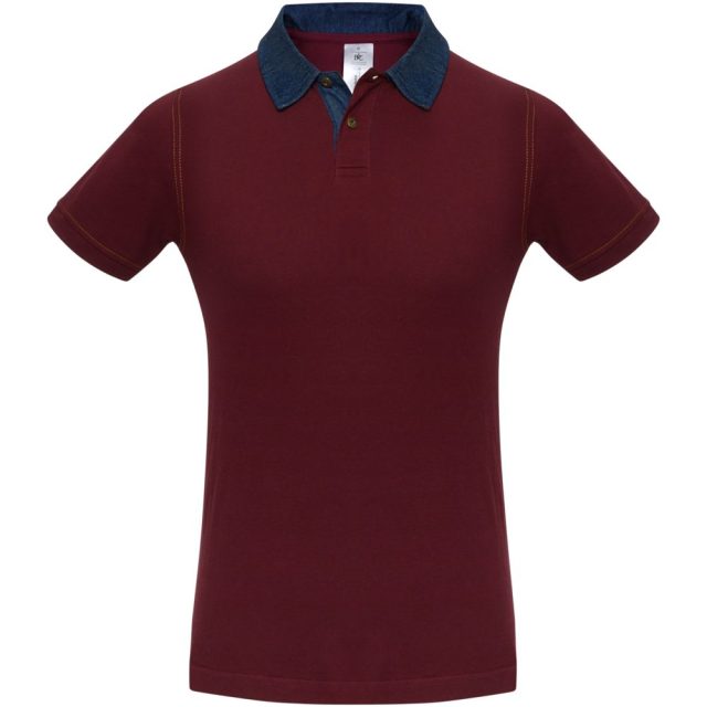 Рубашка поло с джинсовым воротником и контрастной отстрочкой.