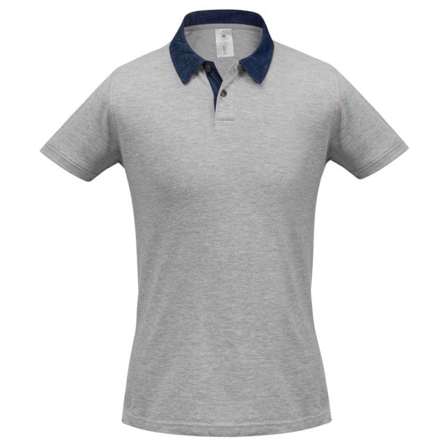 Рубашка поло с джинсовым воротником и контрастной отстрочкой.
