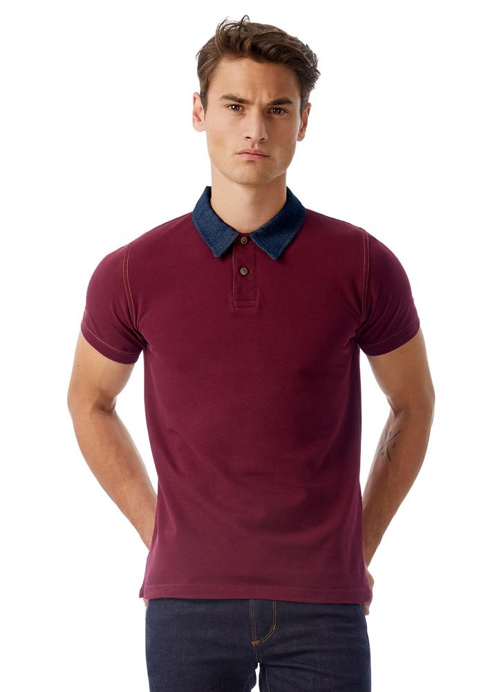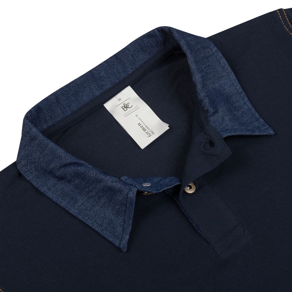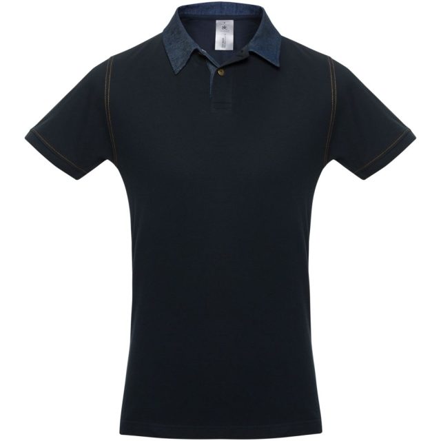 Рубашка поло с джинсовым воротником и контрастной отстрочкой.