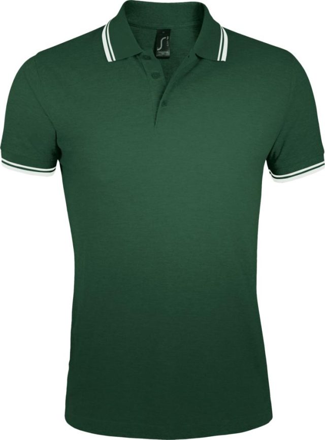 Рубашка поло мужская Pasadena Men 200 с контрастной отделкой, зеленая с белым