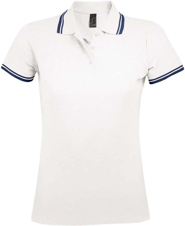 Рубашка поло женская Pasadena Women 200 с контрастной отделкой, белая с синим