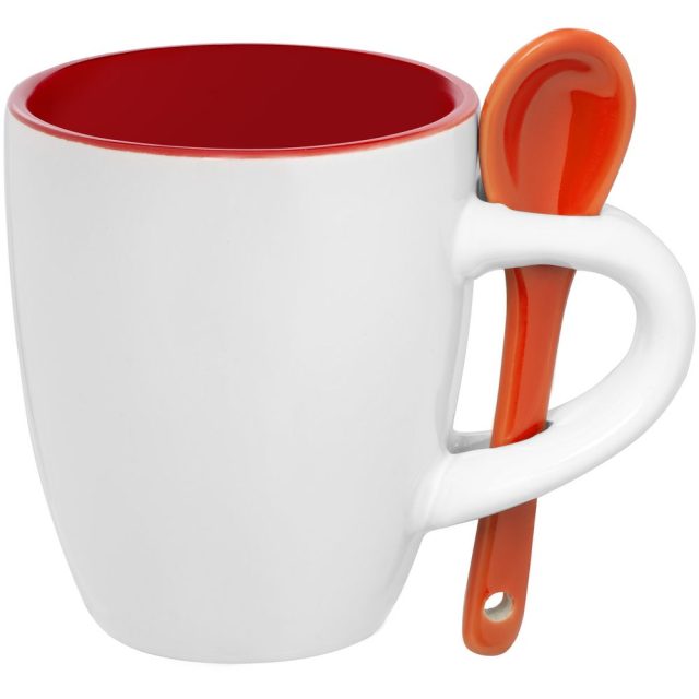 Кофейная кружка Pairy с ложкой, красная с оранжевой