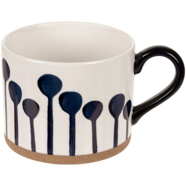Образ кружки в уютном деревенском стиле завершает как будто необработанный керамический ободок у основания.