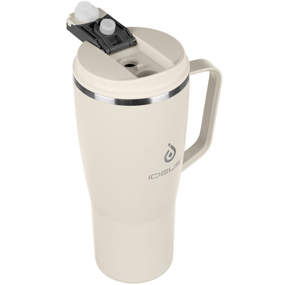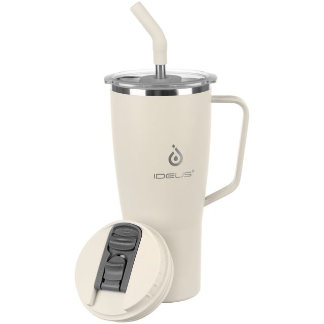 • 2 крышки в комплекте: одна на 100% герметичная с механизмом блокировки отверстия для питья, вторая — с отверстием для трубочки