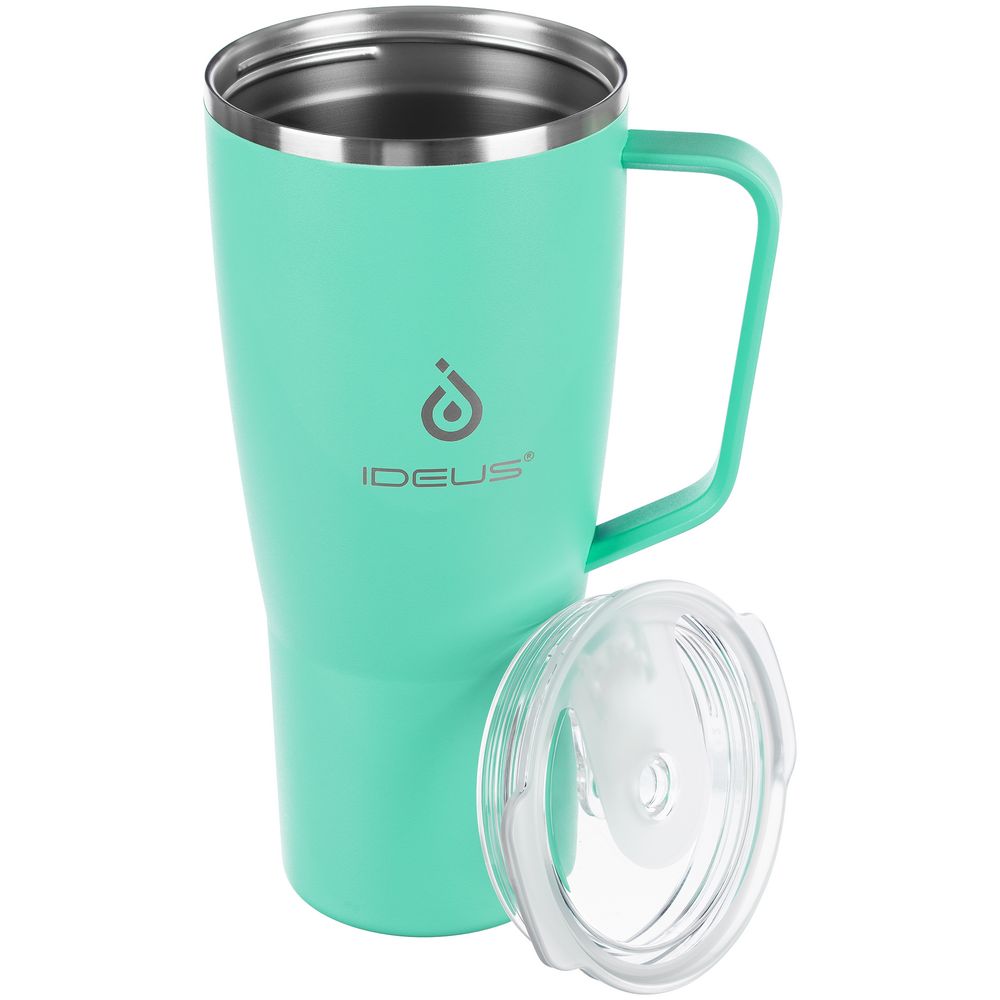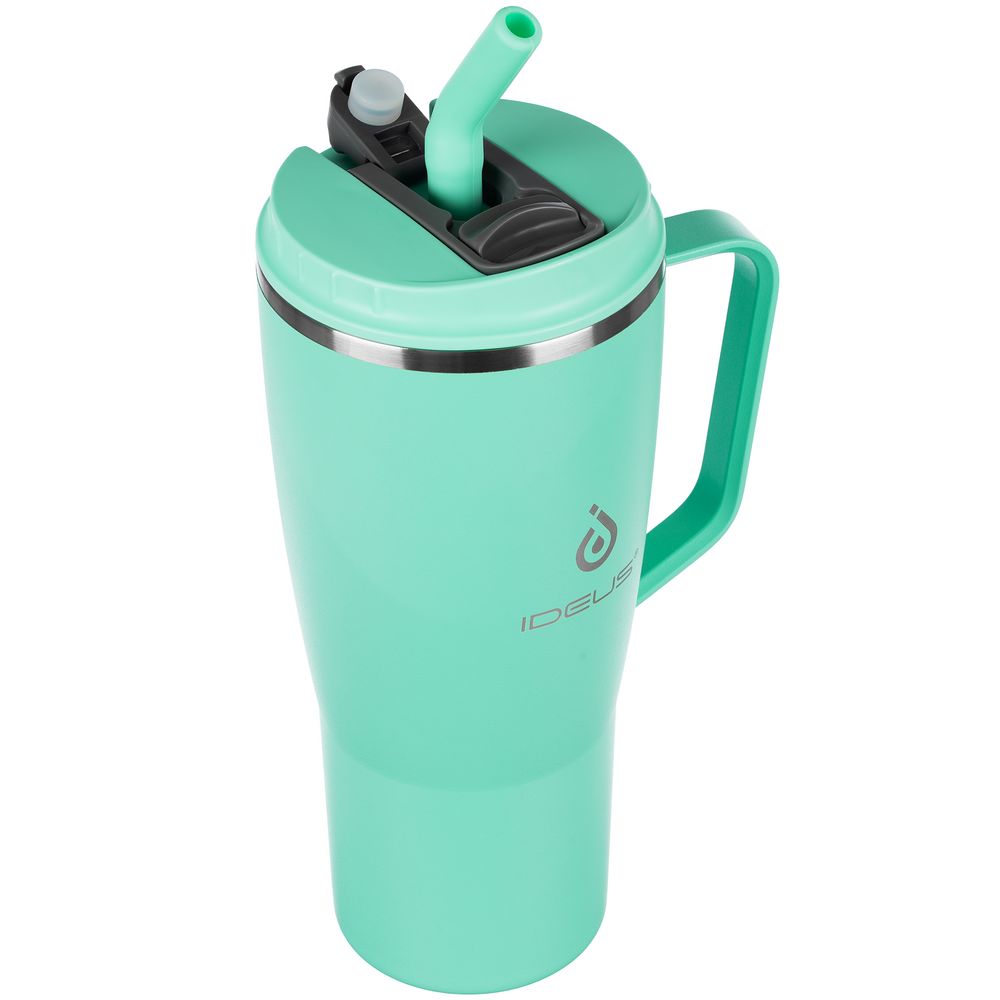 - 2 крышки в комплекте: одна на 100% герметичная с механизмом блокировки отверстия для питья, вторая — с отверстием для трубочки
