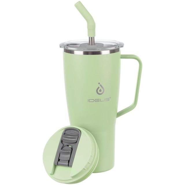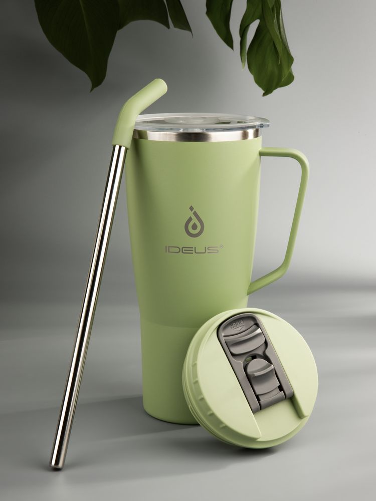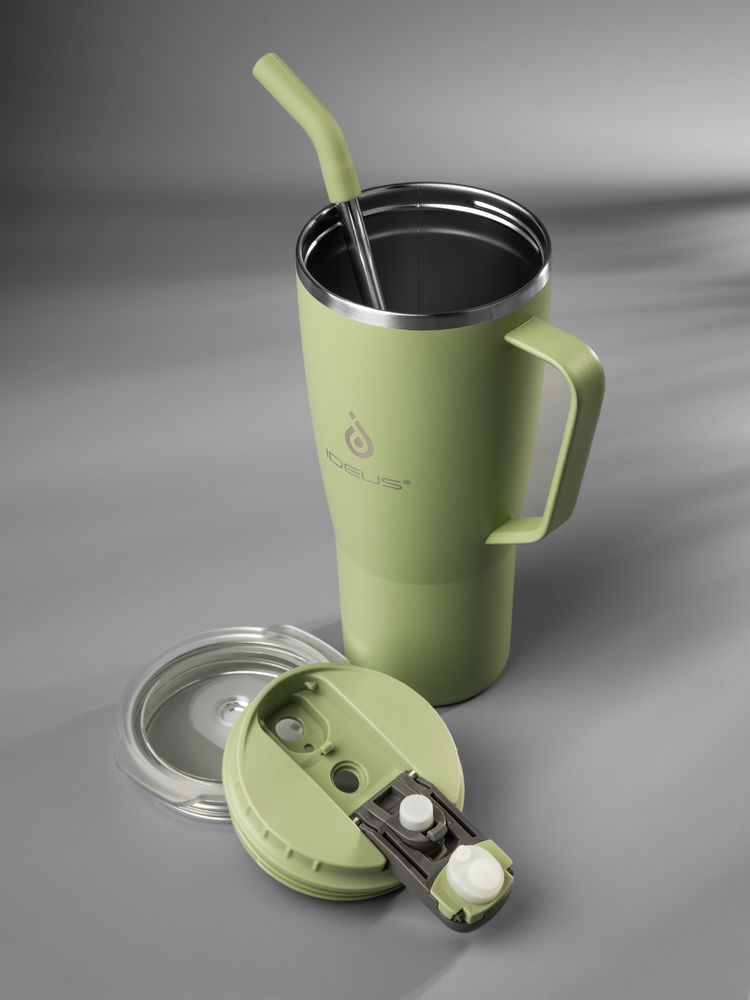 • 2 крышки в комплекте: одна на 100% герметичная с механизмом блокировки отверстия для питья, вторая — с отверстием для трубочки