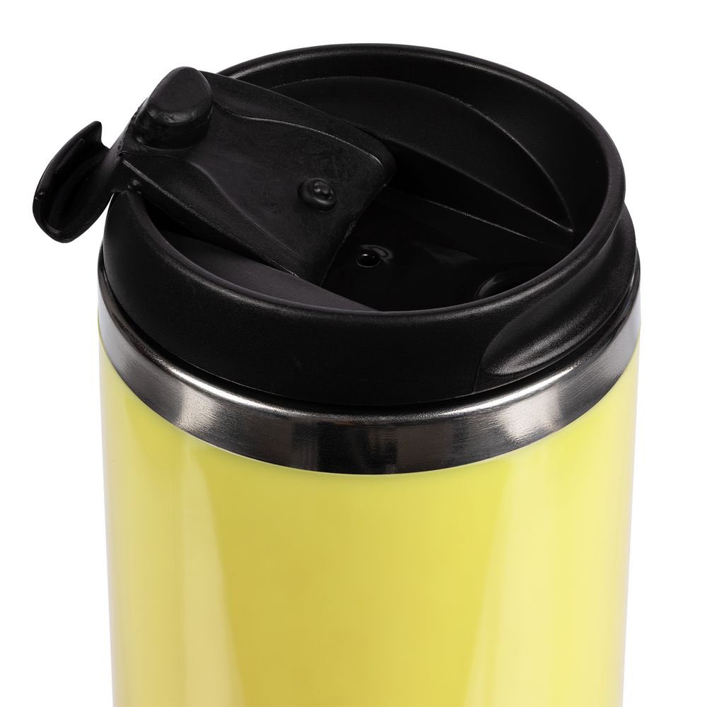 Двухслойная конструкция из пластика снаружи и пищевой нержавеющей стали внутри. Герметичная завинчивающаяся крышка с откидным клапаном для питья.