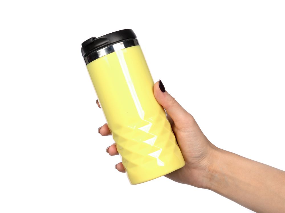 Покрытие кружки Prism напоминает глянцевую эмаль, — и рельефная поверхность корпуса дополнительно подчеркивается яркими бликами.