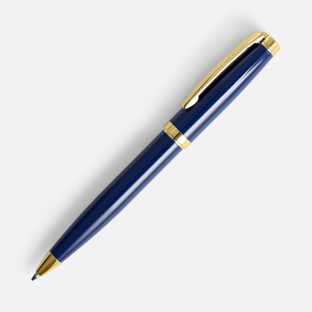 Классическая металлическая ручка с глянцевым корпусом и золотистыми деталями. Идеальный подарок для ценного сотрудника.