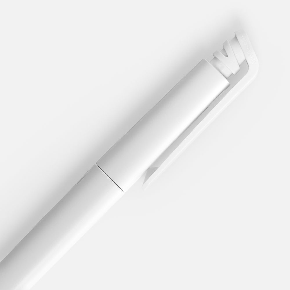 Шариковая ручка с эргономичным треугольным корпусом из матового пластика.