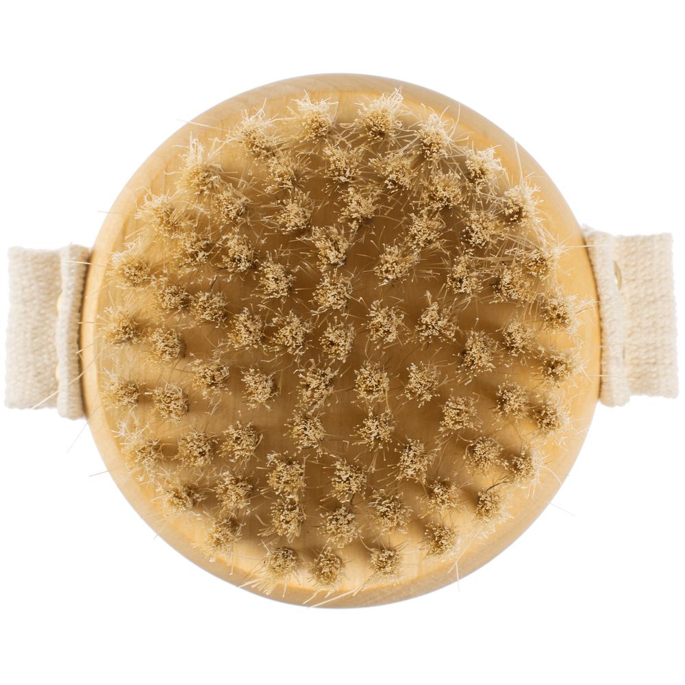 Щетка изготовлена из экологичных материалов. Натуральная щетина средней жесткости защитит кожу от мелких повреждений, подарив только самые приятные ощущения.