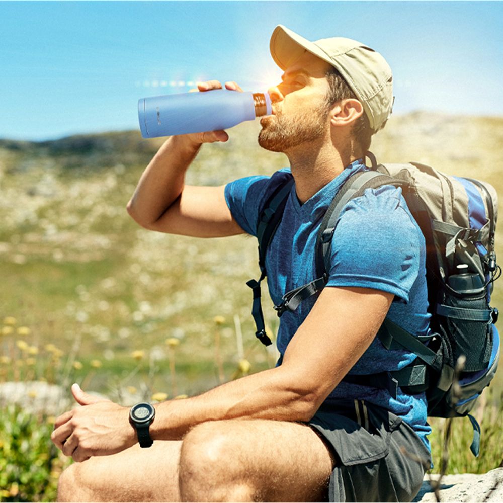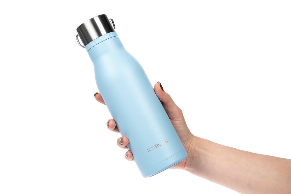 Вместительная бутылка для воды классической формы.