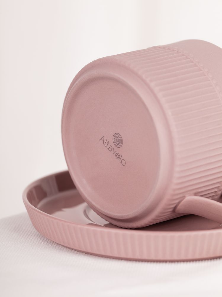 Орнамент корпуса кружки и высокого бортика блюдца напоминает изящные каннелюры — вертикальные желобки на колонне. Это добавляет всему изделию изысканности и стилистической завершенности, благородства и античной строгости.