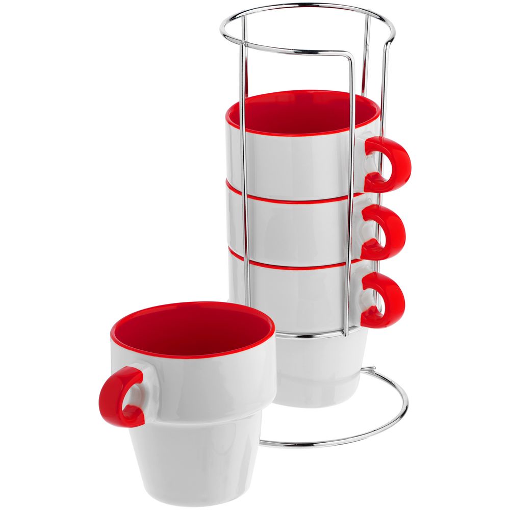 Набор из 4 кружек Inset с подставкой, красный