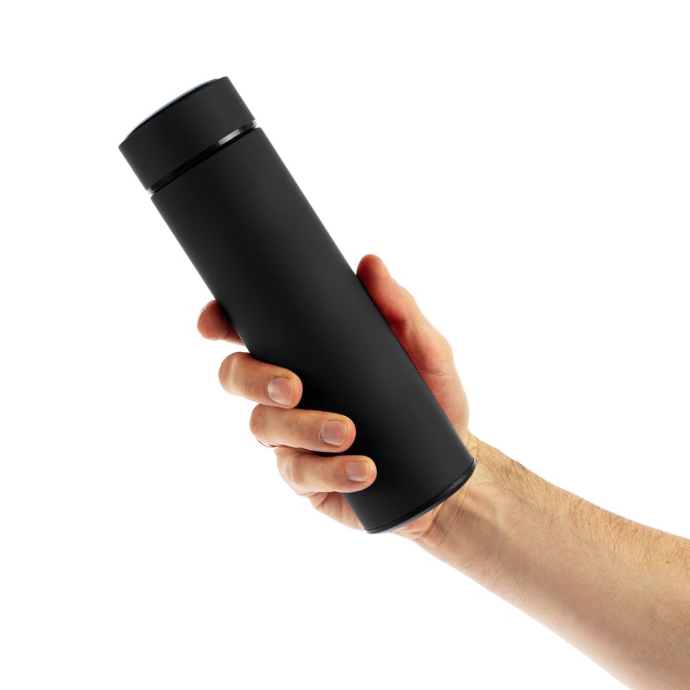 Компактный термос Percola пригодится и в городе, и на природе. Съемное ситечко поможет заварить чистую чашку чая или кофе, а цилиндрический корпус даст широкие возможности для маркетинговых сообщений.