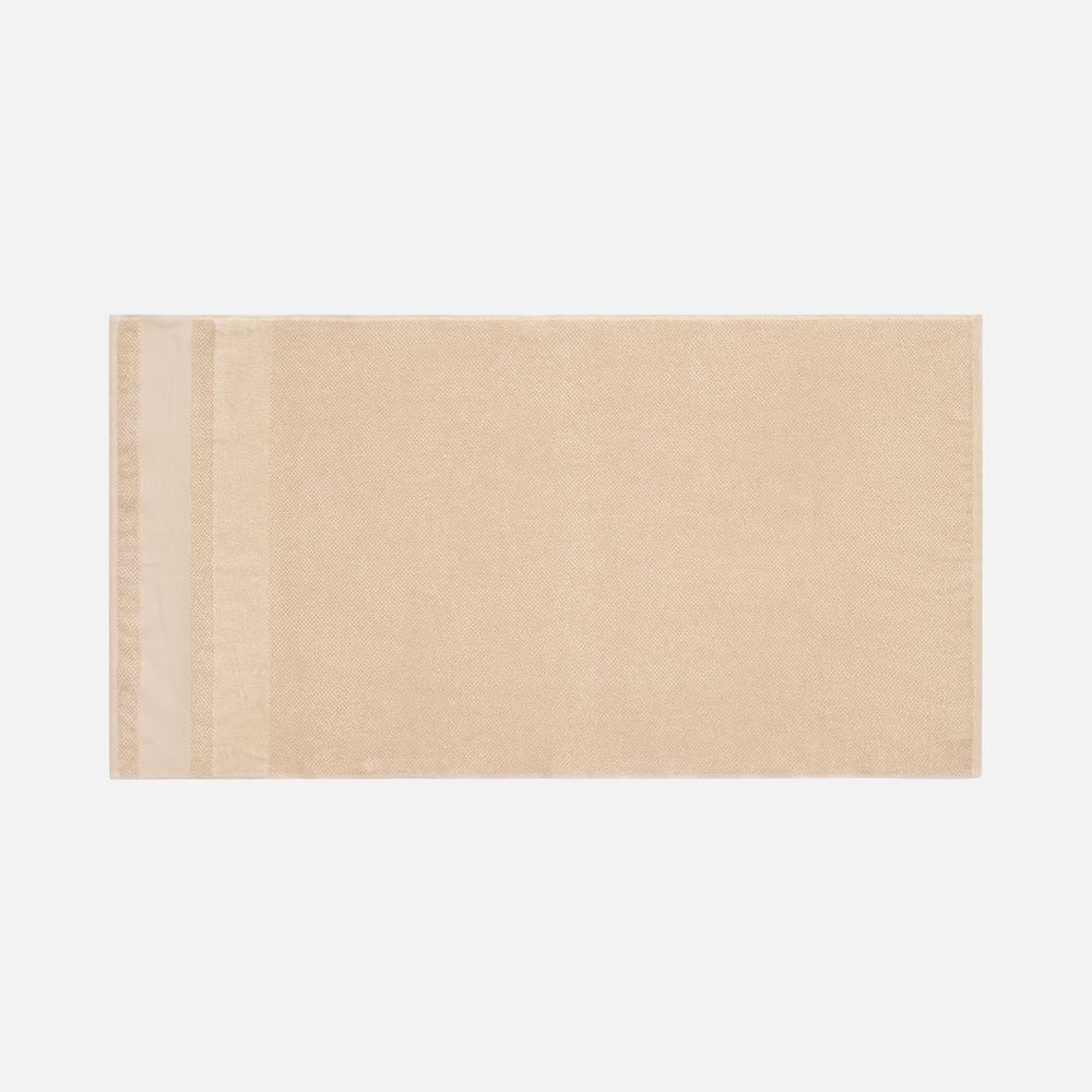 Пышная рельефная структура создает эффект роскошного спа-ухода и быстро впитывает влагу благодаря расположенным пучками петлям, а изящная полоса из стриженных петель с эффектом велюра добавляет ему мягкости и элегантности. Практичный гладкий бордюр станет идеальным холстом для нанесения символики и позволит создать уникальный персональный подарок.