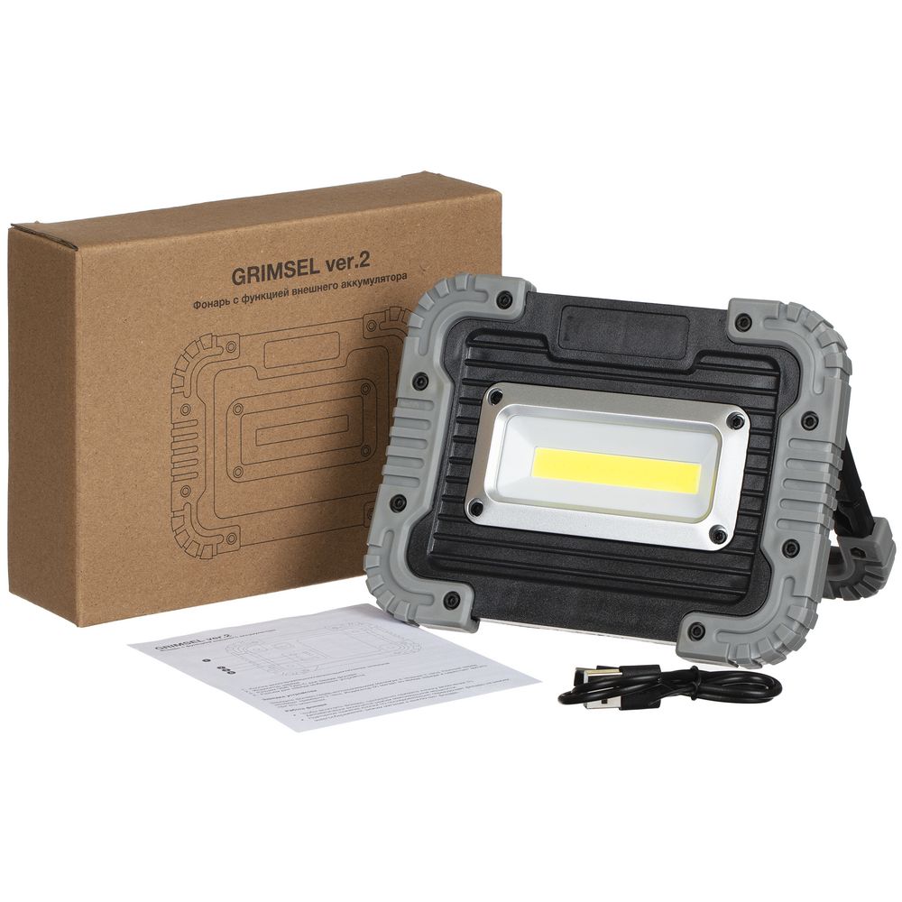 Мощный аккумуляторный фонарь для кемпинга, дачных выездов и строительных работ. Вращающаяся на 180° ручка позволяет зафиксировать фонарь в нужном положении. Встроенный аккумулятор имеет выход USB, который позволяет использовать фонарь в качестве источника питания для зарядки телефона.