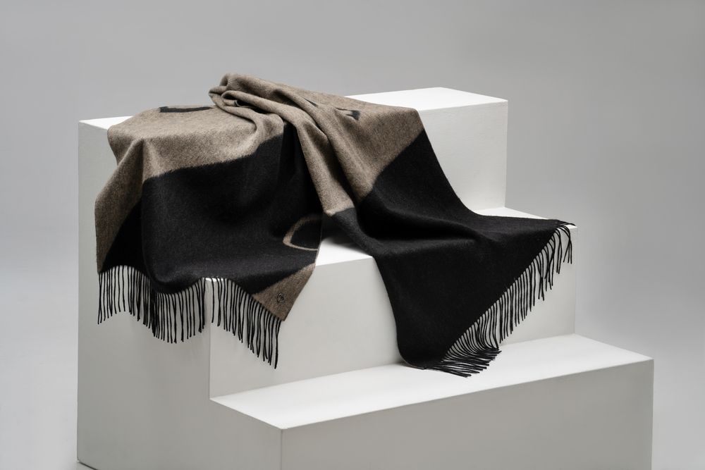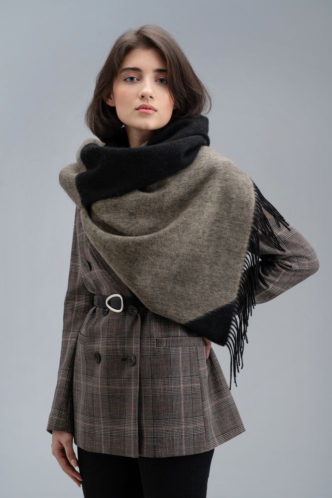 Объемный палантин Charming с геометрическим рисунком добавит строгому образу легкости и задора.