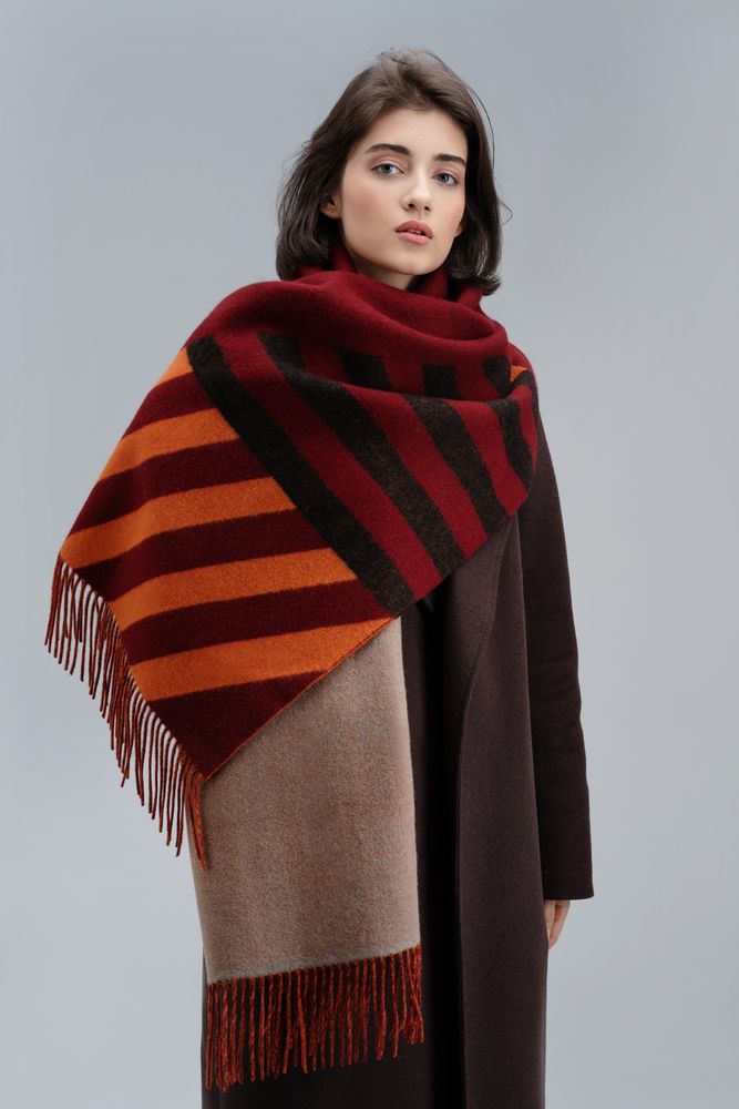 Объемный палантин Charming с геометрическим рисунком добавит строгому образу легкости и задора.