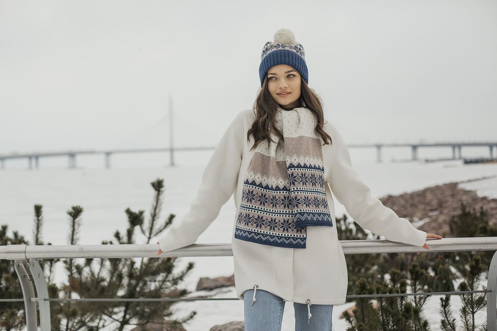 Шарф Happy View — это настроение волшебных рождественских фильмов, переданное через традиционный орнамент и классическое сочетание цветов.Шарф из полушерстяной пряжи с двусторонним жаккардовым узором.