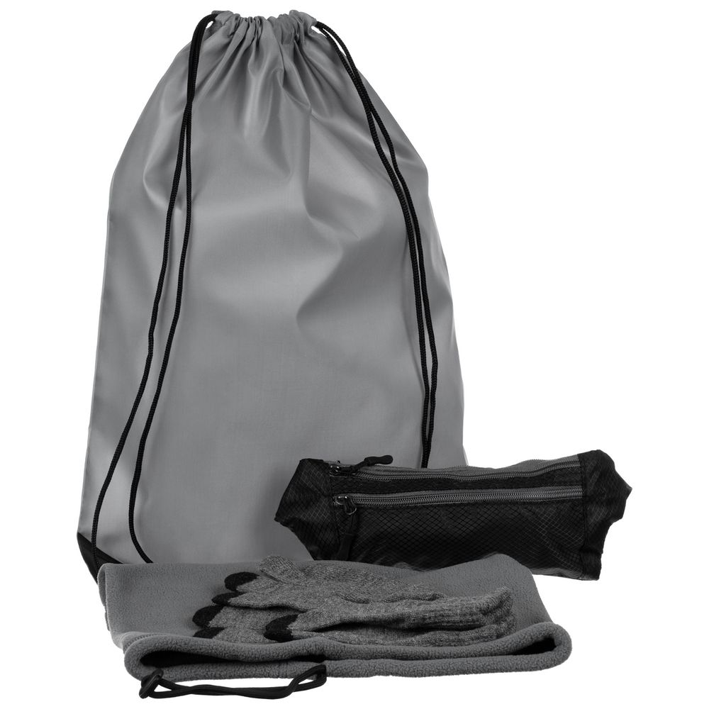 поясная сумка, рюкзак — полиэстер 100%; бафф — флис; перчатки — акрил 100%