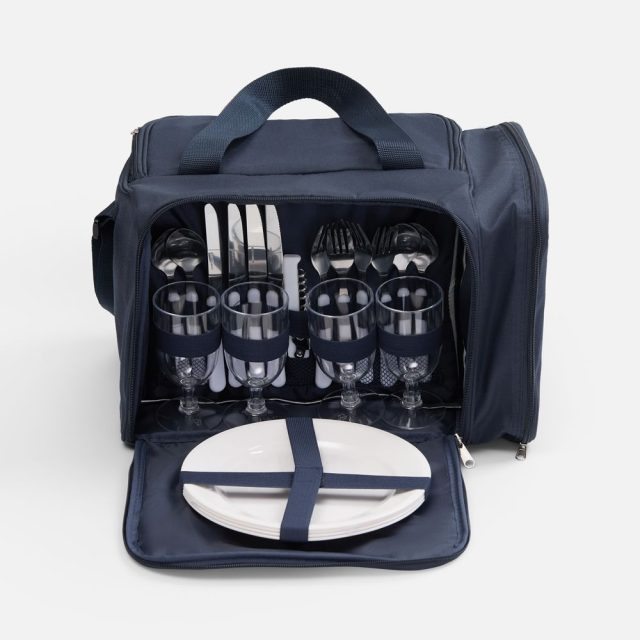 Campello — это продуманный комплект для идеального выездного фуршета на небольшую компанию. Здесь есть необходимые столовые приборы на 4 персоны, а также открывалка и практичные пластиковые бокалы для вина — все, что нужно, чтобы подкрепиться и расслабиться во время чудесного отдыха на природе!