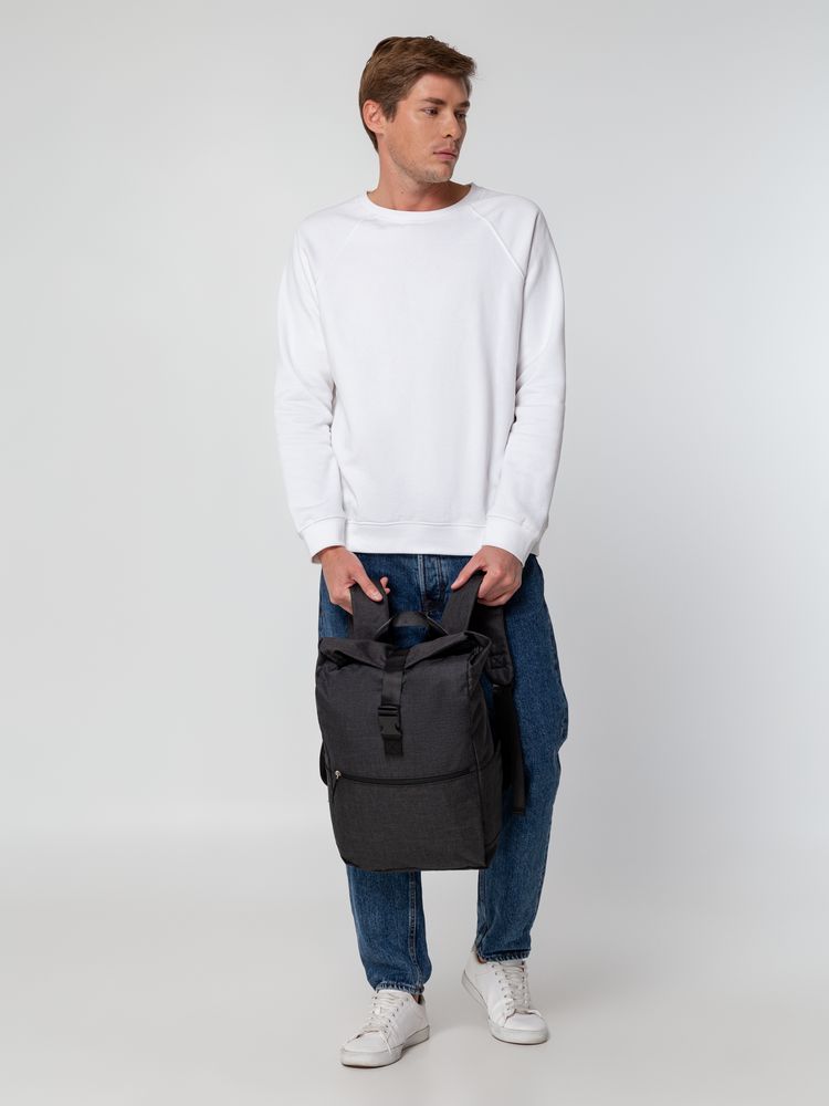 Стильный городской рюкзак для ноутбука в формате роллтоп — его верхняя часть закручивается и подворачивается под ленту с застежкой «фастекс».