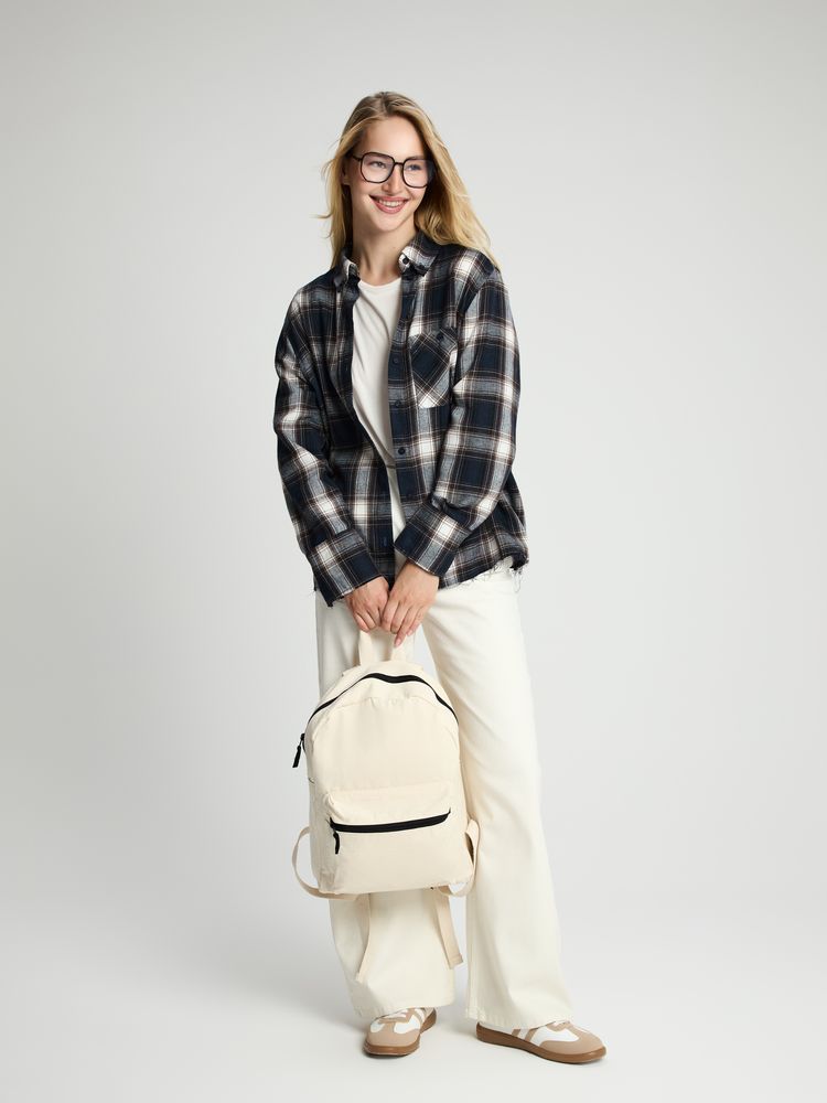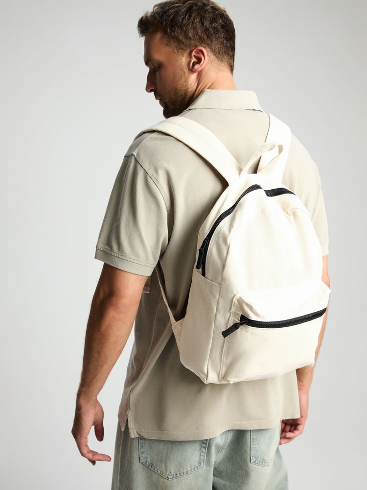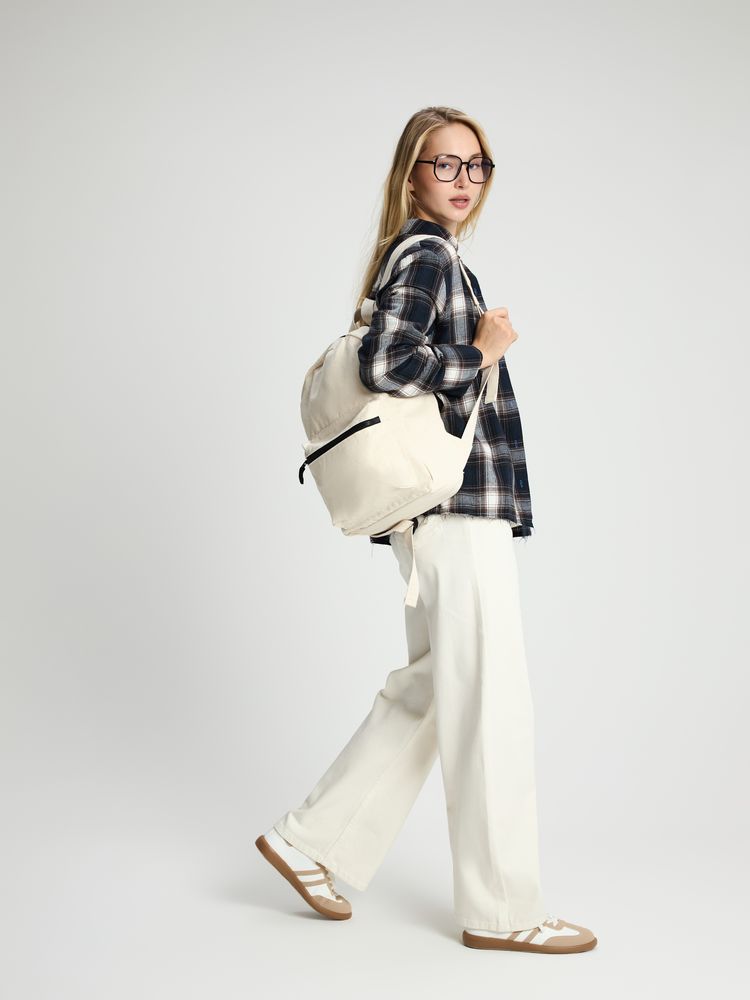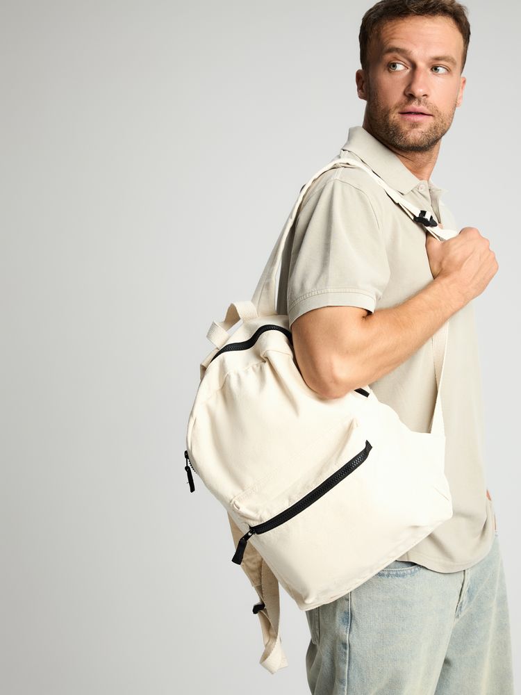 Легкий рюкзак в экостиле — из плотного неокрашенного хлопка с контрастными деталями.