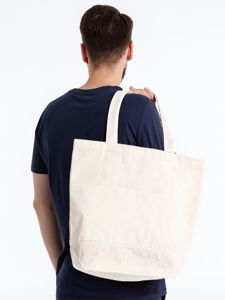 Объемная холщовая сумка-шоппер Shopaholic — отличный компаньон в походе за покупками. Для тех, кто может спокойно признаться себе: «Да, я шопоголик».