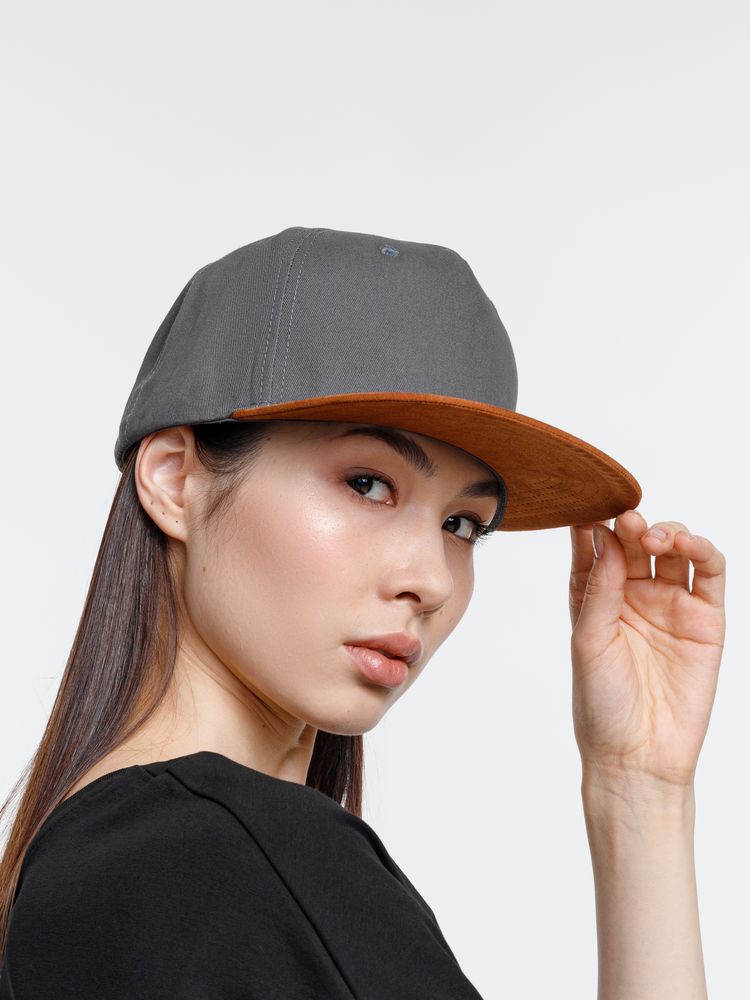 • Плотный контрастный прямой козырек из мягкой, приятной на ощупь ткани с велюровым эффектом