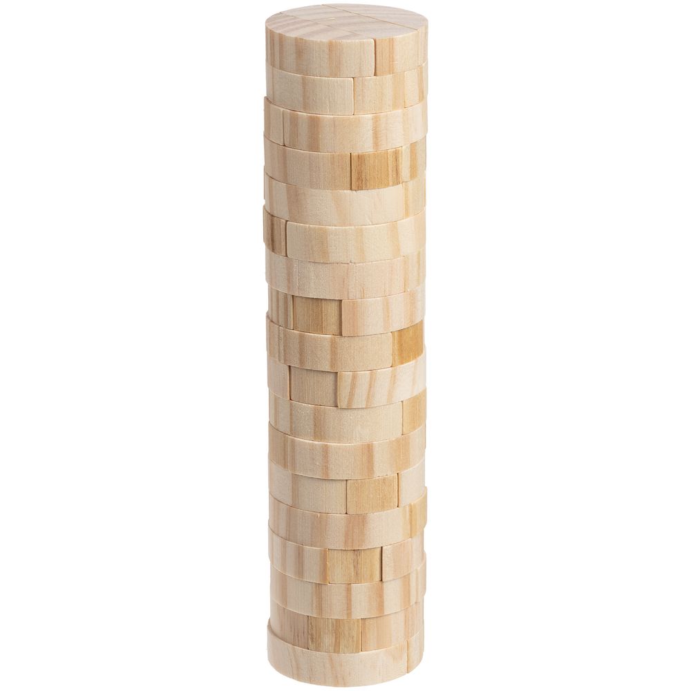 Игра состоит из 54 деревянных брусочков (18 этажей). Поставляется в черной картонной коробке с контурным изображением башни. Инструкция с правилами в комплекте.