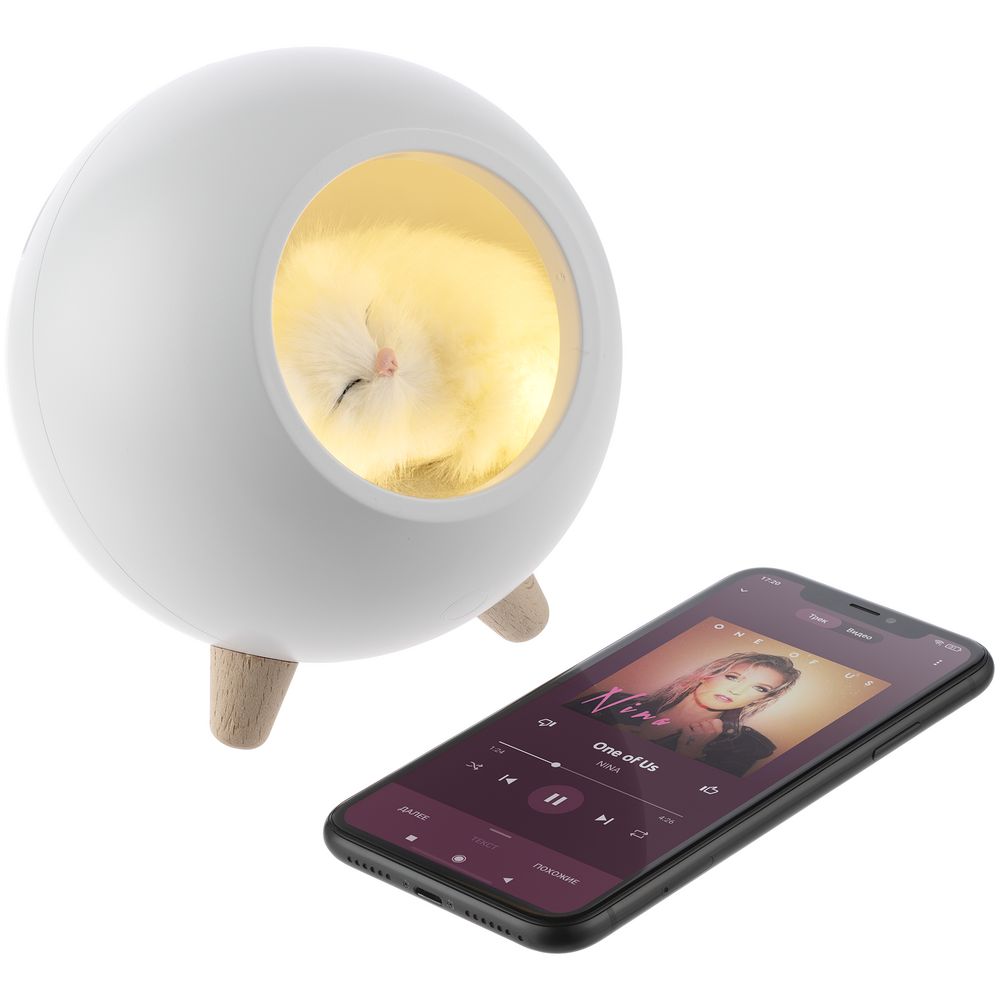 Беспроводная лампа-колонка Right Meow, белая