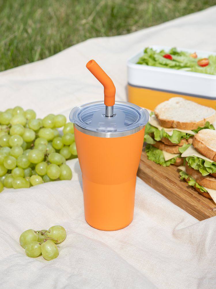 • 2 крышки в комплекте: одна на 100% герметичная с механизмом блокировки отверстия для питья, вторая — с отверстием для трубочки