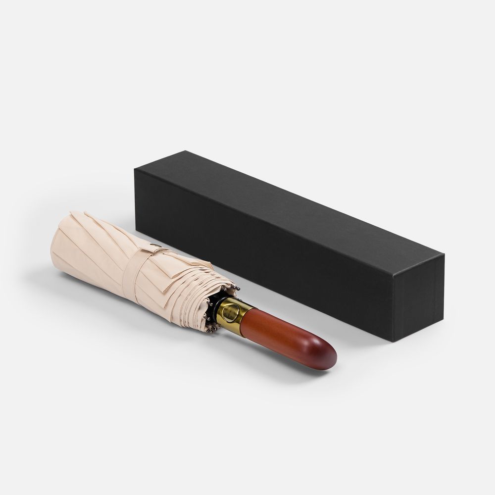 Автоматический механизм позволяет раскрыться за секунду. Плотная ткань купола обеспечивает высокую прочность и устойчивость к разрывам, при этом оставаясь легкой. А ручка из натурального дерева обеспечивает комфортный захват и добавляет зонту благородности.